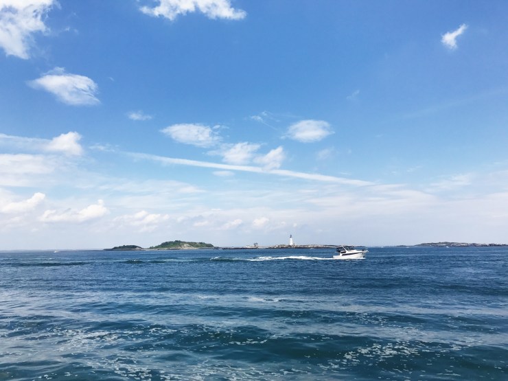 The boat traveled for nearly an hour and a half before stopping in the deep blue sea to observe the whale. Prior to reaching Massachusetts Bay, the boat traveled through the Boston Harbor, and with that, we had stunning views of the city until being out in the open.