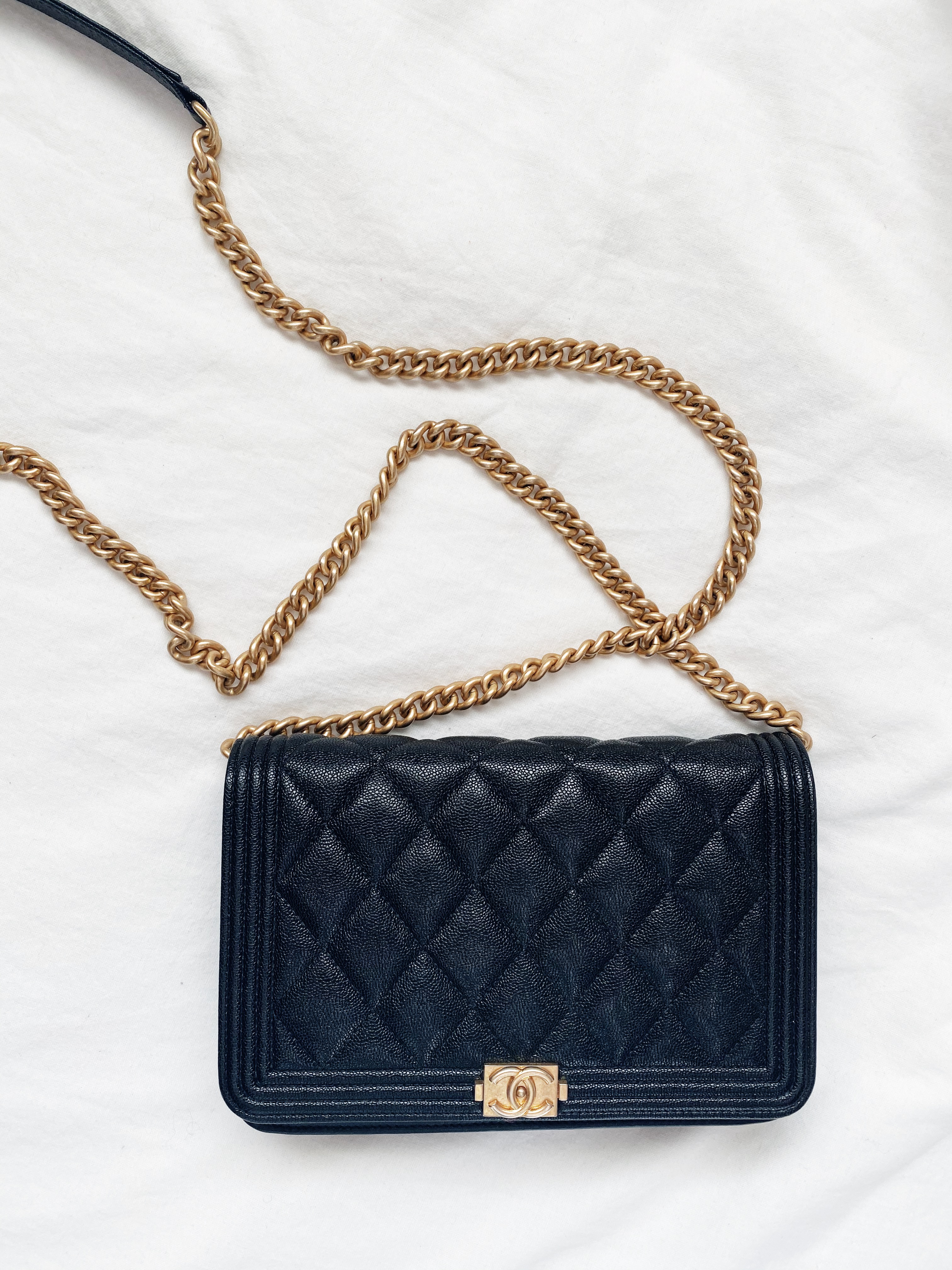 Two years ago I began thinking of a way to treat myself after graduating college, and quickly set my mind on buying a luxury handbag – it felt as though it was my initiation into the adult world. As I spent endless hours polishing my resume and applying for jobs, I supplemented my LinkedIn and Indeed searches with equal parts handbag research. Despite being naturally indecisive (shout out to my fellow Pisces), I determined a Chanel bag was what I’d buy. After seeing infinite Pinterest, Instagram, blog posts, etc., it was time to bite the bullet and purchase a Chanel bag with black caviar leather and gold hardware. Little did I know the exact combo of leather and hardware I was seeking was the most sought out Chanel combination. Given the cost of any Chanel item, my initial goal was to buy a Wallet on Chain, in either the Classic or Boy collections – which ever I could get my hands on first. The search for a Chanel black caviar, gold hardware bag would extend to two years. My local Chanel boutique never had the leather/hardware combination in stock, I made multiple trips to all Toronto locations, and visited all NYC locations during a weekend getaway.